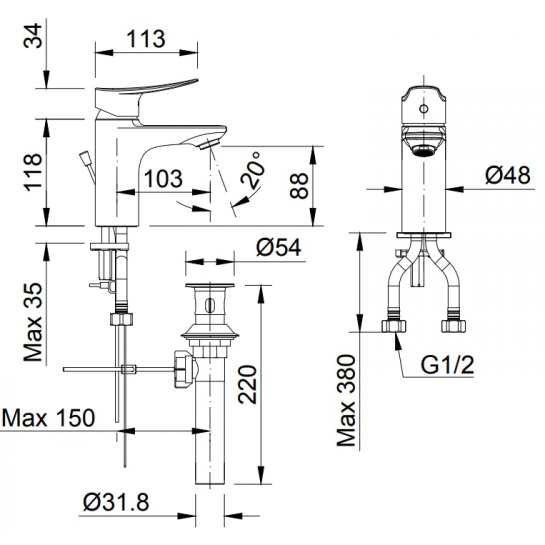 - Sản phẩm bao gồm trụ xả, không bao gồm ống thải chữ P