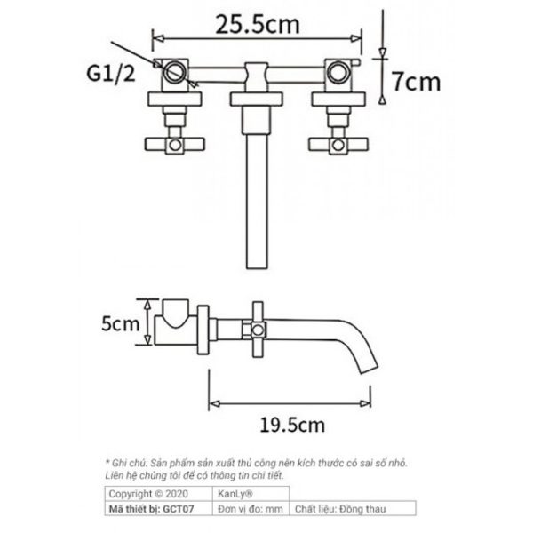 Vòi Lavabo Kanly GCT07 Nóng Lạnh Bằng Đồng Gắn Âm Tường