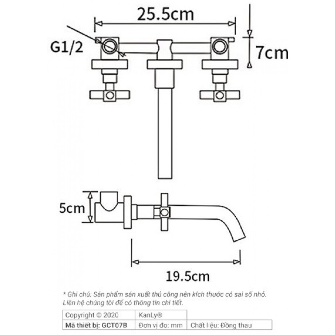 Vòi Lavabo Kanly GCT07B Gắn Tường Nóng Lạnh Màu Đen