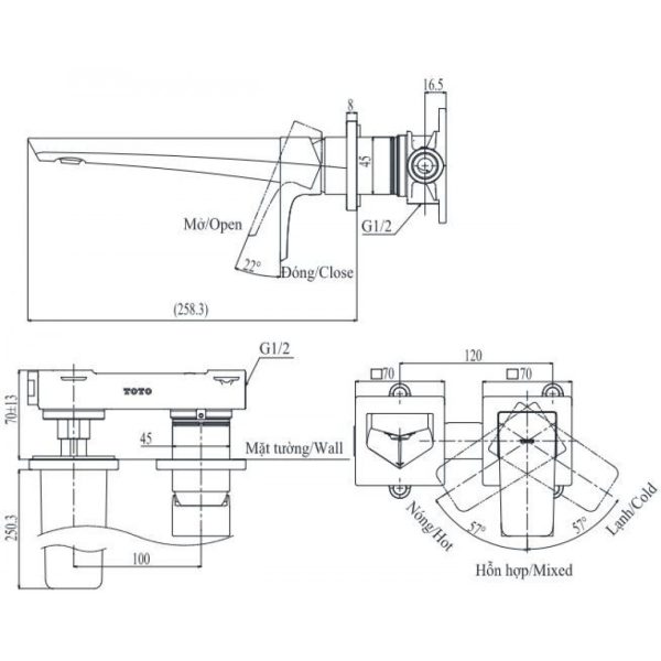 Tính năng vòi lavabo gắn tường TOTO TLG07308B B