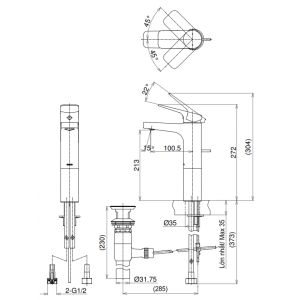 Bản vẽ kỹ thuật vòi chậu lavabo TOTO TTLR302FV-1