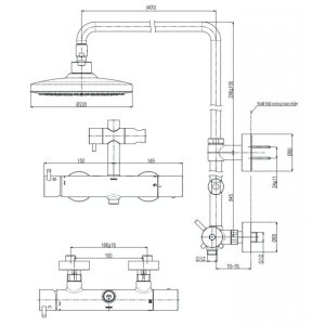 Bản vẽ kích thước vòi sen cây TOTO TBW 01303AB