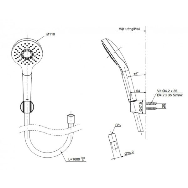 Vòi Sen Tắm TOTO TBG01302VA/TBW01008A Nóng Lạnh