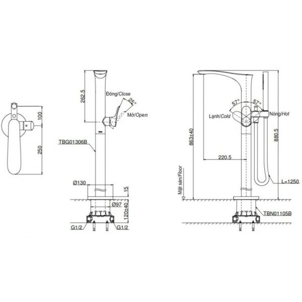Tính năng vòi xả bồn TBG01306BA#MBL+TBN01105B TOTO loại đứng