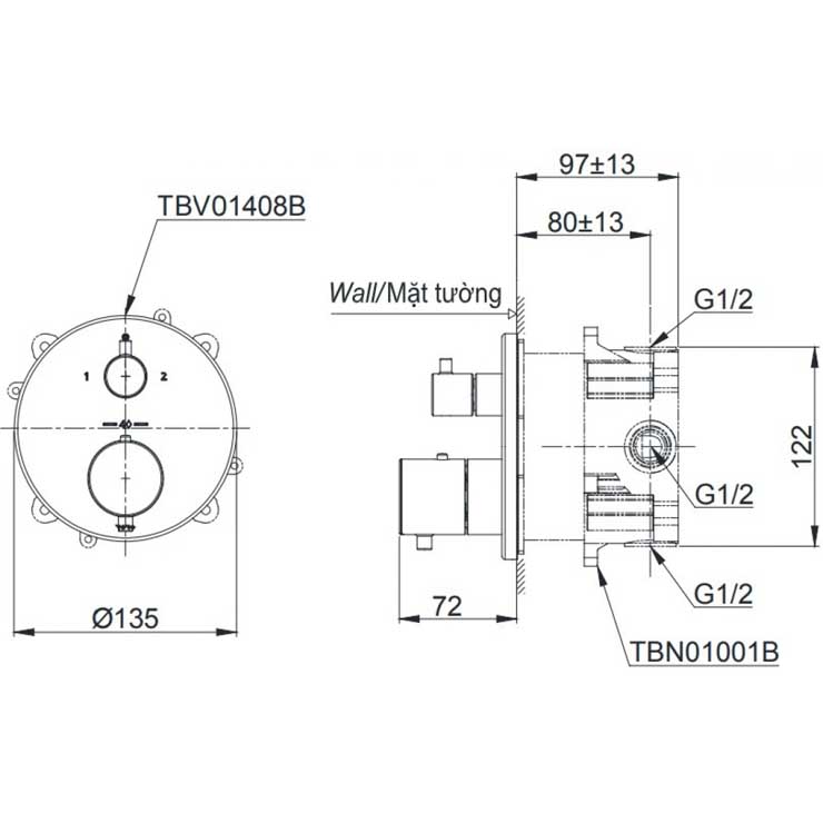 - TBV01408B: Van điều chỉnh nước nóng lạnh