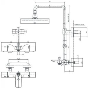 Vòi Sen Cây TOTO TBW08406A Nhiệt Độ Vuông 300mm