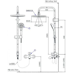 • Vòi sen cây của thương hiệu thiết bị vệ sinh TOTO
