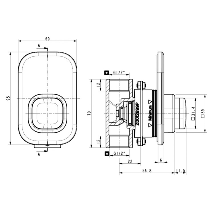 Bản vẽ kích thước vòi sen âm tường WFT826B American