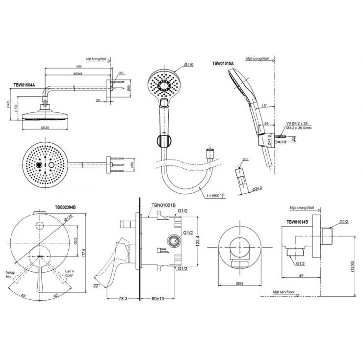 Thông tin cơ bản vòi sen TOTO TBS02304B TBW01004A TBW01010A âm tường