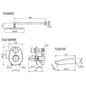 Bản vẽ bộ sen tắm TOTO TX488SZ TX473SFBR TX441SF