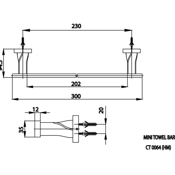 Bản vẽ kích thước thanh treo khăn Cotto CT0064 GR HM