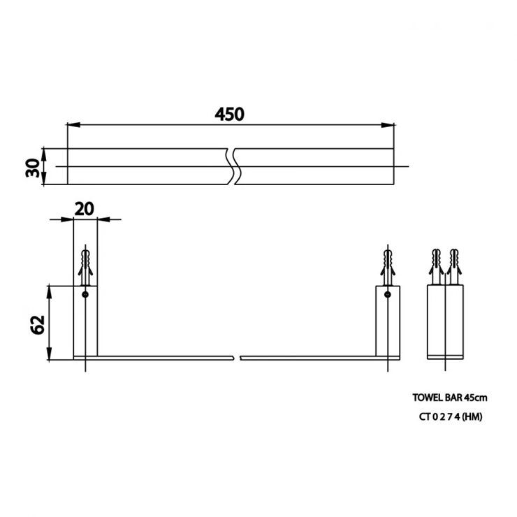 Bản vẽ kĩ thuật thanh vắt khăn CT0274 HM cotto