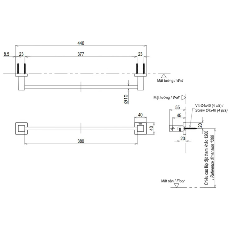 - Kích thước : 440 x 55 x 400 mm