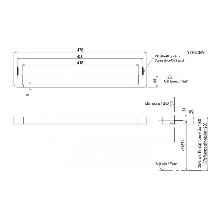Bản vẽ thanh vắt khăn TOTO YT902S4V