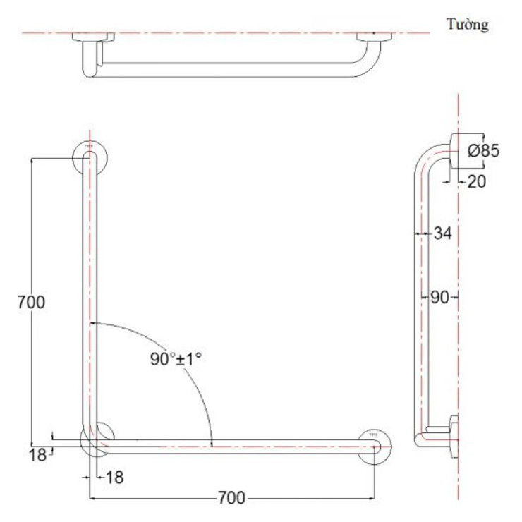 Bản vẽ thanh vịn T113BL9 T110D3R(X3) TOTO