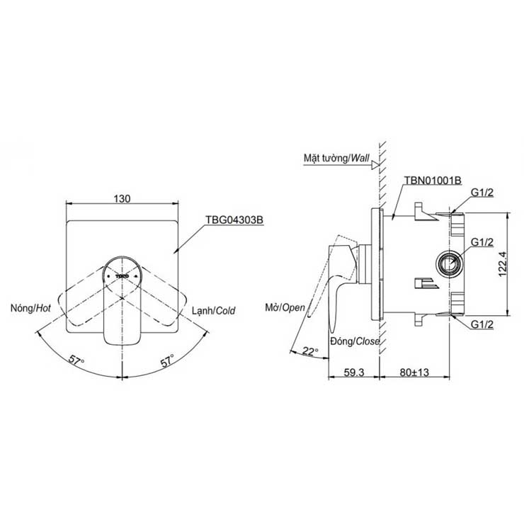- TBG04303B: Van điều chỉnh nước nóng lạnh