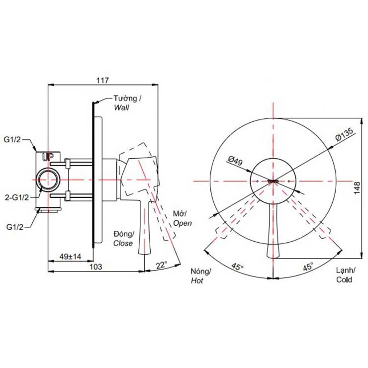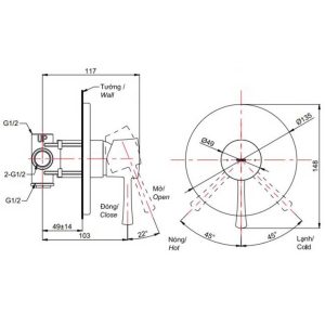 - Áp lực nước: 0.05MPa ~ 0.75MPa