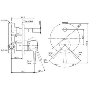 Bản vẽ kỹ thuật van gật gù TOTO TBS012304B nòng lạnh