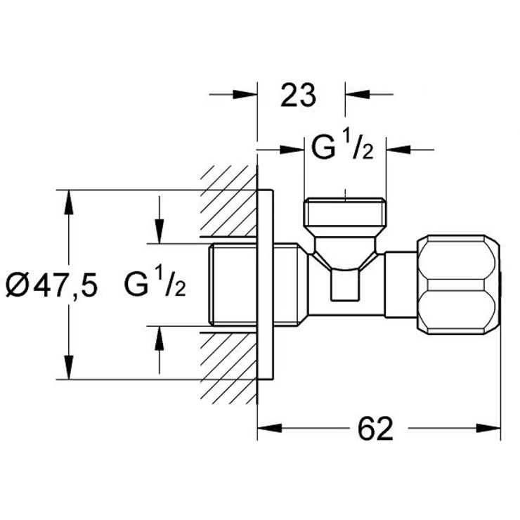 Bản vẽ kích thước van khóa góc 1 đường nước 2201600M Grohe