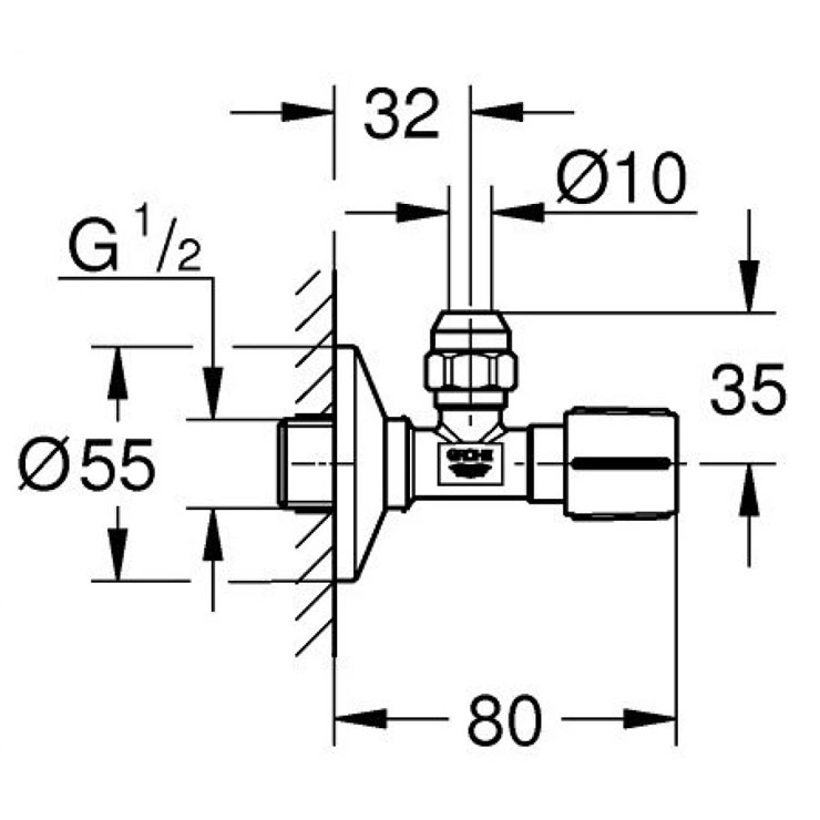 Bản vẽ kích thước van khóa góc 1 đường nước 22037000 Grohe