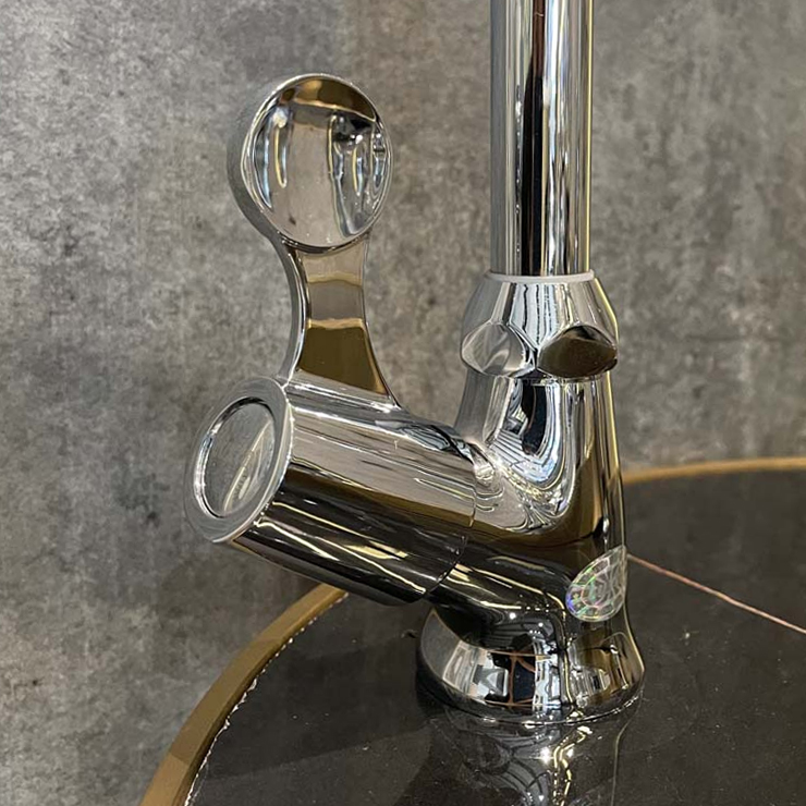 - Chân và vòng chặn đế bằng đồng tạo nên sự vững chắc cho vòi.