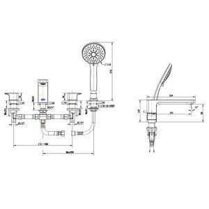- Vòi gắn thành bồn: có dạng 3 lỗ hoặc 4 lỗ: có tay sen và dây sen được âm trong thành bồn, có thế kéo ra được.