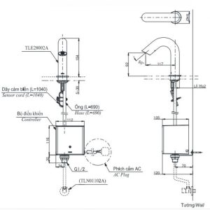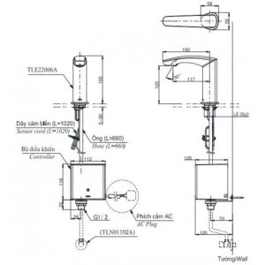 - Áp lực nước: 0.05MPa ~ 0.75MPa