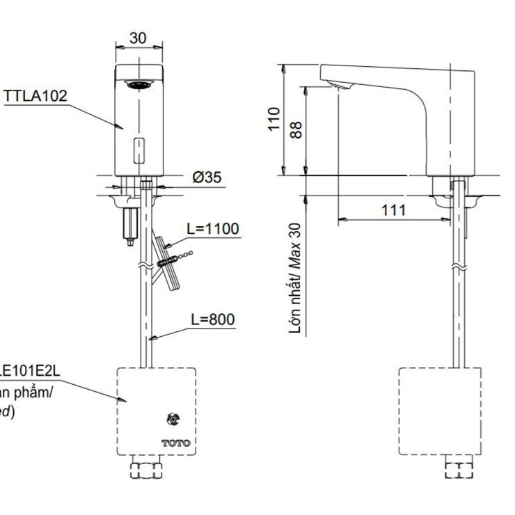 Thông tin vòi lavabo cảm ứng TOTO TTLA102/TTLE101E2L/HAP004A