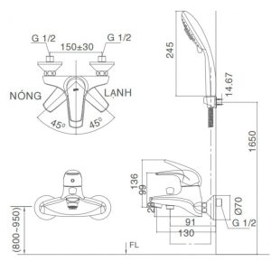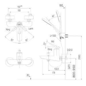 Bản vẽ kỹ thuật Vòi sen tắm nóng lạnh INAX BFV-503S