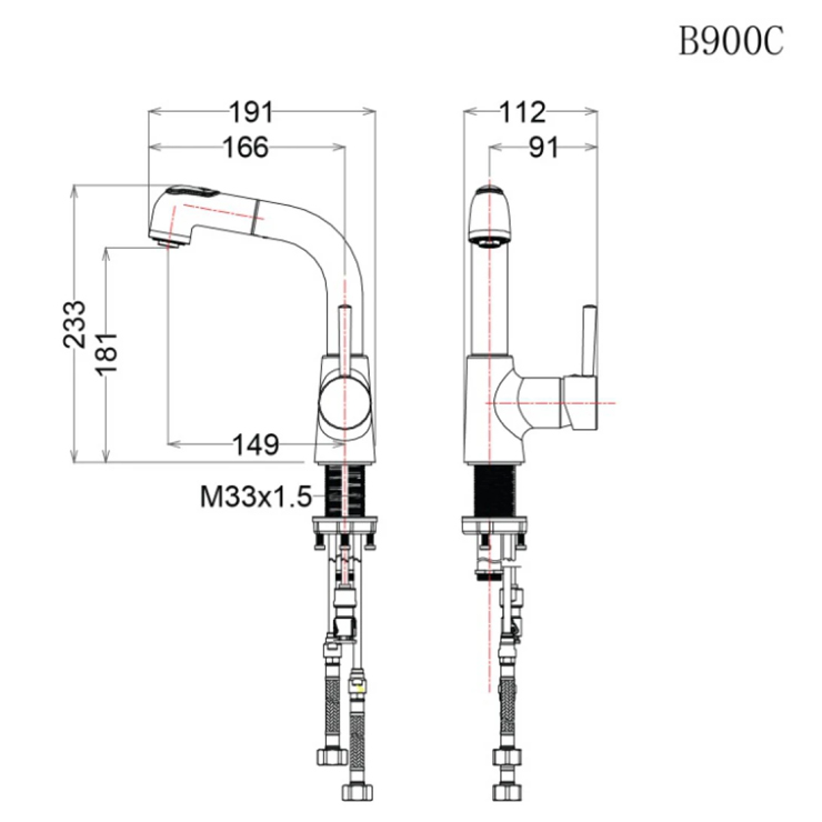 Bản vẽ kỹ thuật vòi nóng lạnh dây rút Caesar B 900CU