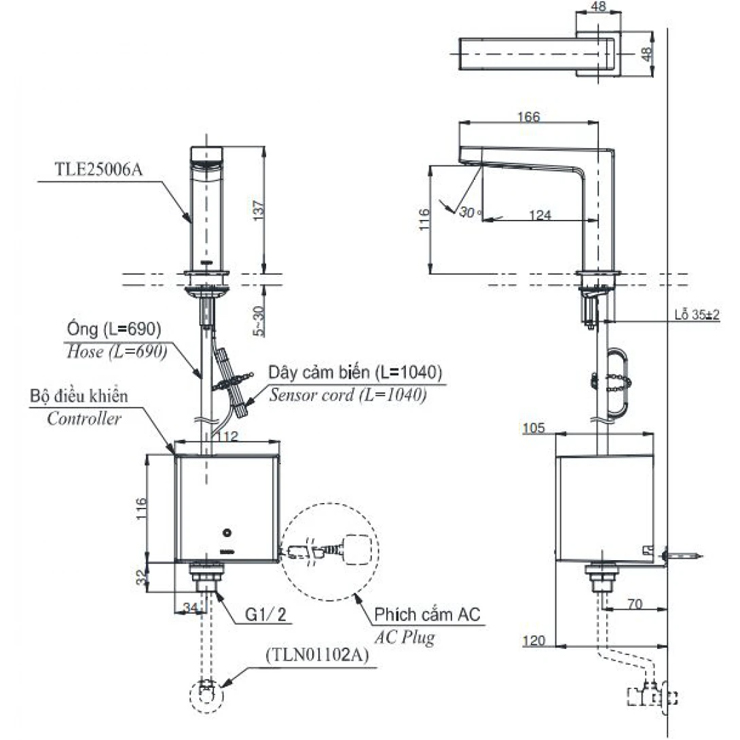 Bản vẽ vòi tự động TOTO TLE 25006 A