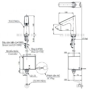 Bản vẽ kích thước vòi TOTO TLE27002A-TLE04502A1-TLN01102A