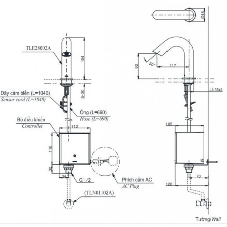 Thông tin vòi cảm ứng TOTO TLE28002A/TLE04502A1/TLN01102A