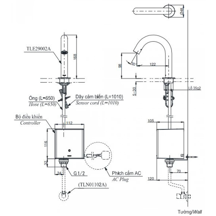 Bản vẽ vòi tự động TOTO TLE 29002 A