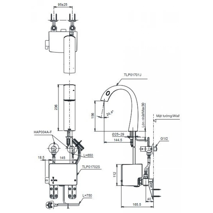 Bản vẽ vòi lavabo TOTO cảm ứng TLP01701J