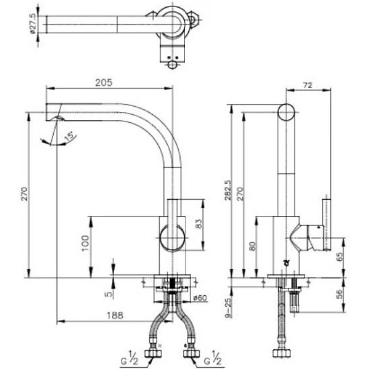 Bản vẽ kích thước vòi thân cao cotto cpf 200ay gr2 cotto màu vàng