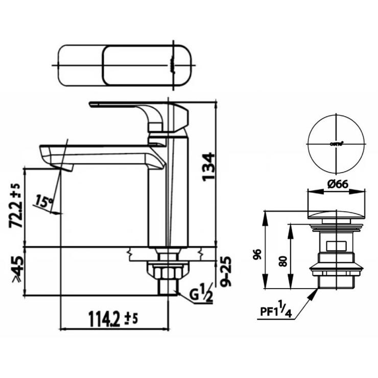 Bản vẽ kích thước vòi lavabo CT 1142 A GR Cotto