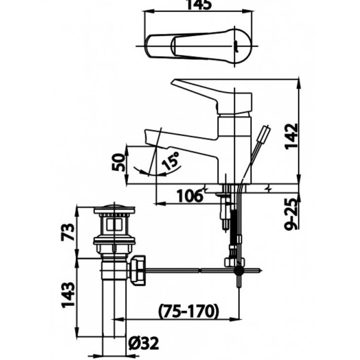 Bản vẽ kích thước vòi chậu rửa mặt nóng lạnh cotto CT2178AE