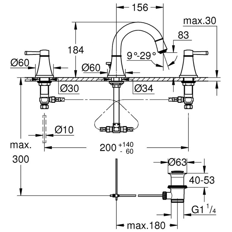 Thông tin vòi chậu rửa mặt Grohe 20417IG0 nóng lạnh 3 lỗ