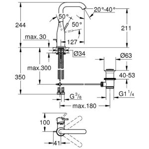 • Vòi chậu lavabo thân vừa (M): Là vòi rửa có thân cao hơn với loại dòng S, thường lắp cho lavabo bán âm bàn không có lỗ gắn vòi trên thân, số ít hãng có dòng sản phẩm này.