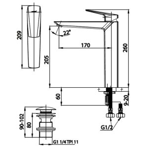 - Vòi nước lavabo cao cổ (L): Loại vòi lavabo này có thân cao, chỉ sử dụng được cho các loại lavabo đặt bàn và không có lỗ gắn vòi trên chậu.