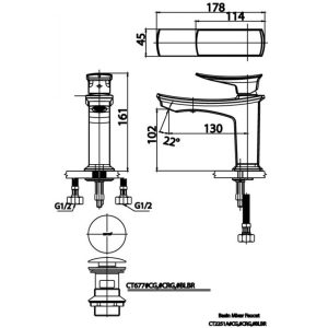 - Vòi lavabo thân thấp (S): Dòng vòi rửa mặt này sẽ thường có 2 loại là vòi đơn và vòi cho chậu 3 lỗ (thường được dùng ở miền Bắc). Kiểu này thường thì sẽ lắp cho lavabo có lỗ vòi trên chậu.