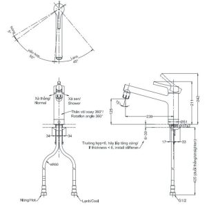 Bản vẽ kích thước vòi rửa chén TOTO TKS05303 J
