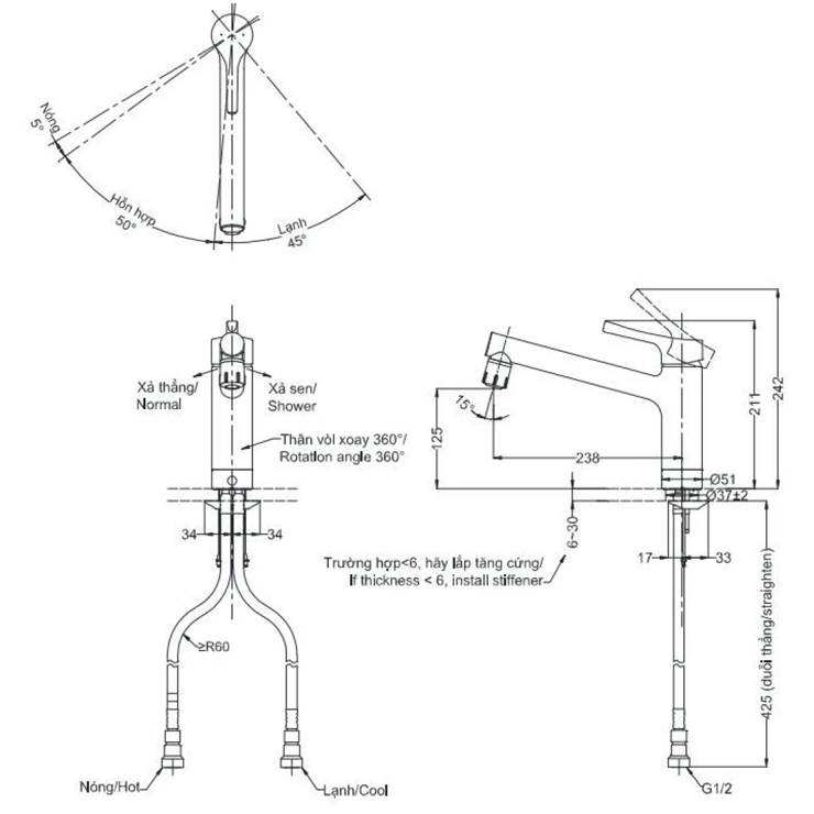 • Áp lực nước: 0.1MPa ~ 0.75MPa