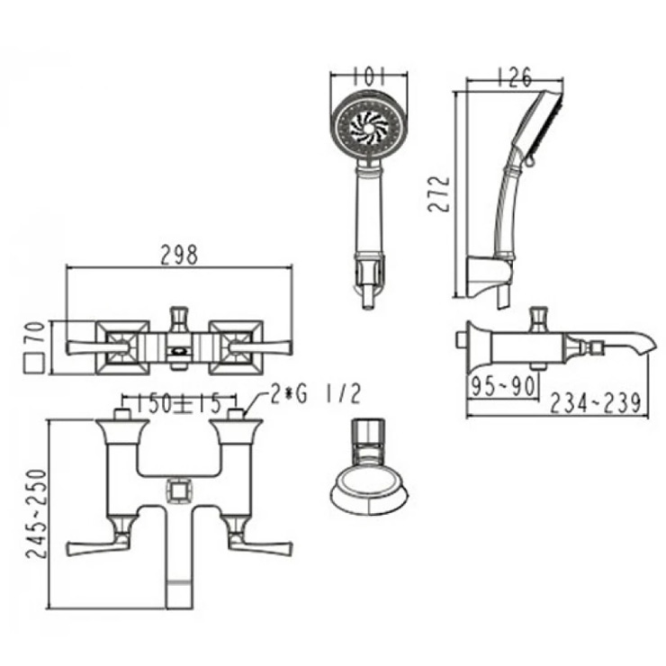 - Vòi sen tắm nóng lạnh American Standard WF-1611 dòng Kastello từ thương hiệu Thiết bị vệ sinh American Standard