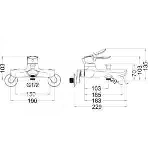 Bản vẽ kỹ thuật Vòi sen tắm nóng lạnh INAX BFV-4103S-5C