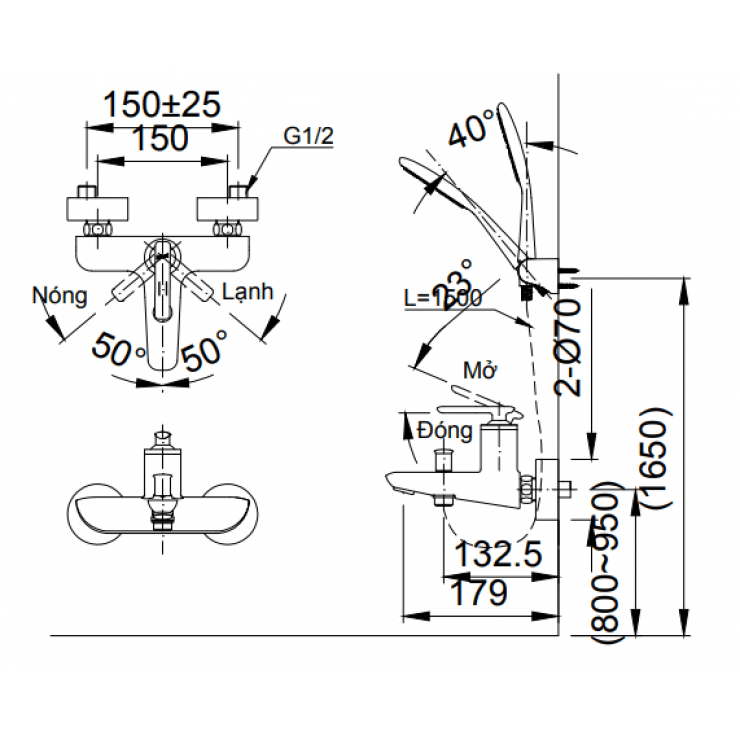 - Áp lực nước : 0.05 MPa ~ 0.75 MPa