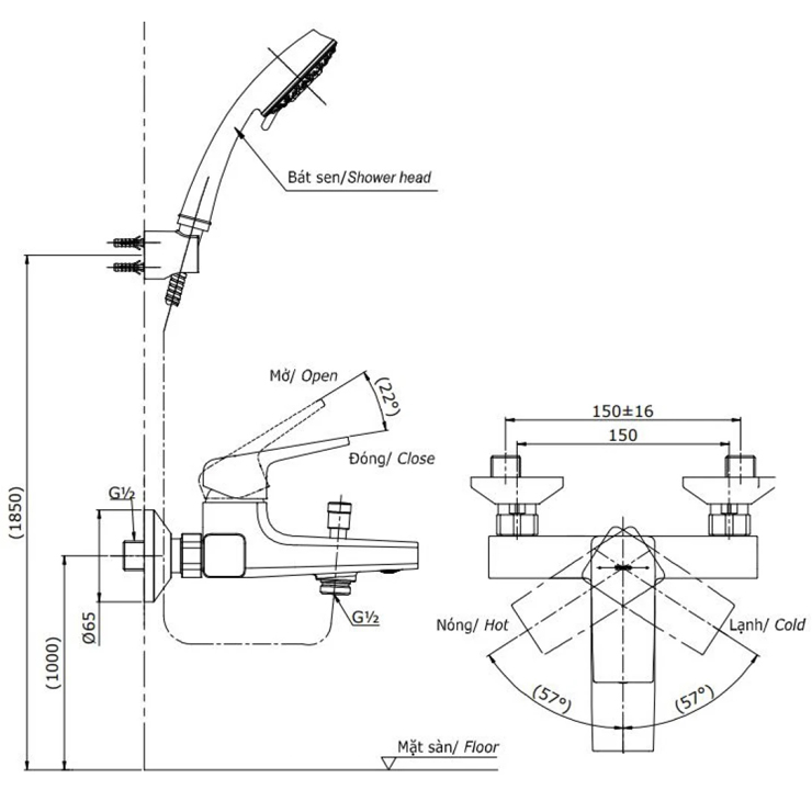 - Áp lực nước: 0.05MPa ~ 0.75MPa