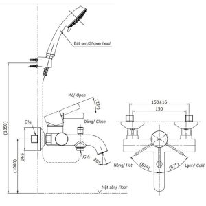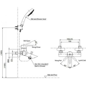 - Áp lực nước: 0.05MPa ~ 0.75MPa