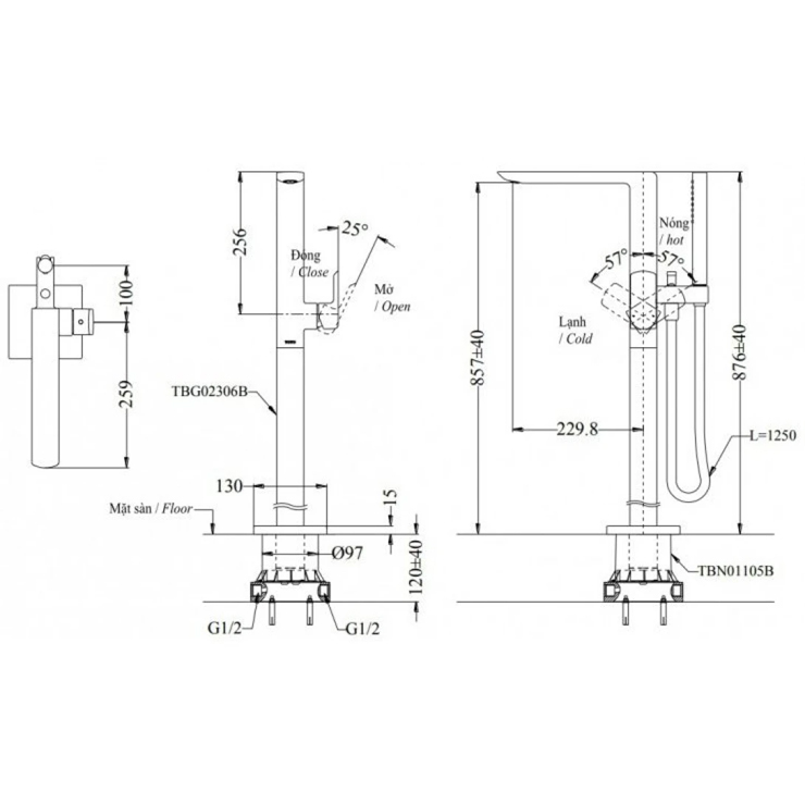 - Tên sản phẩm: Vòi xả bồn nóng lạnh kèm sen tắm Matsu (loại đặt sàn)